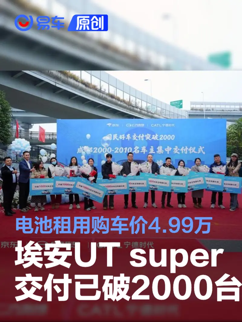 易车讯 12月9日,埃安UT super在成都迎来第2000位提车用户。集体交付仪式上,11位用户现场接收新车钥匙,并见证了第2000辆埃安UT super交付。值得一提的是,此次交付距离第1000辆车交付仅过去一周时间,标志着这款由京东、广汽集团、宁德时代联合推出的“国民好车”在正式开售后半月内,累计交付量已突破2000台。