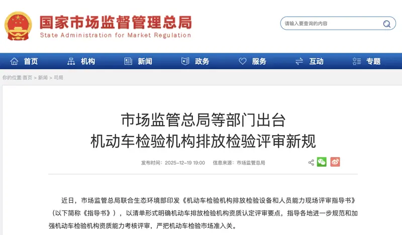 易车讯 近日,市场监管总局联合生态环境部印发《机动车检验机构排放检验设备和人员能力现场评审指导书》(以下简称《指导书》),以清单形式明确机动车排放检验机构资质认定评审要点,指导各地进一步规范和加强机动车检验机构资质能力考核评审,严把机动车检验市场准入关。