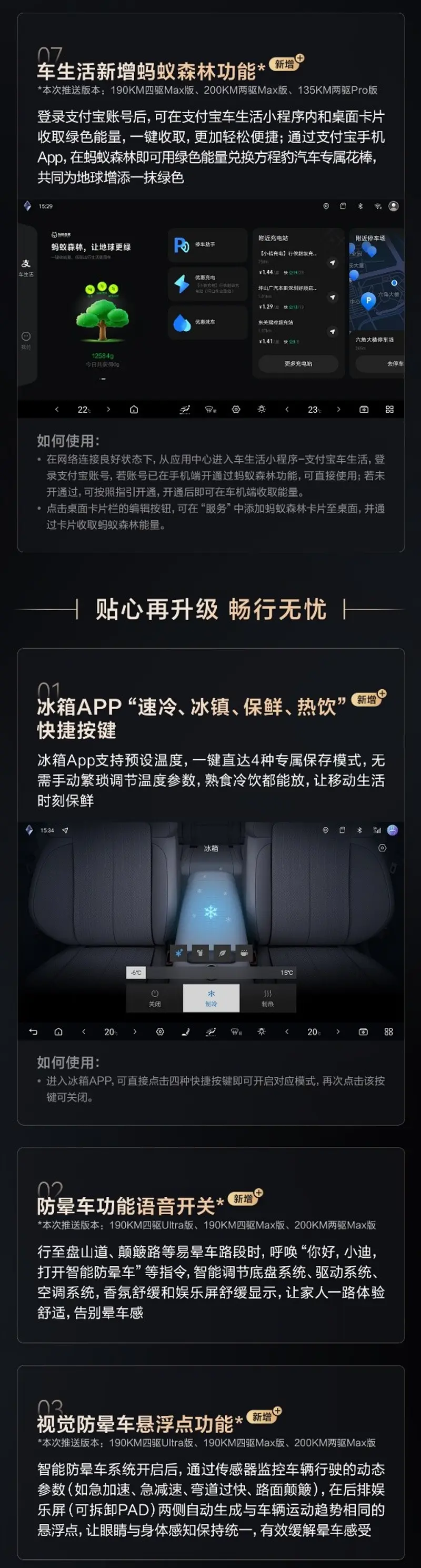 除了功能新增外,本次OTA还涵盖多项体验优化,包括改进待机状态、驾驶平顺性提升、驾驶静谧性增强等,从细节处提升用车便捷性与舒适性。