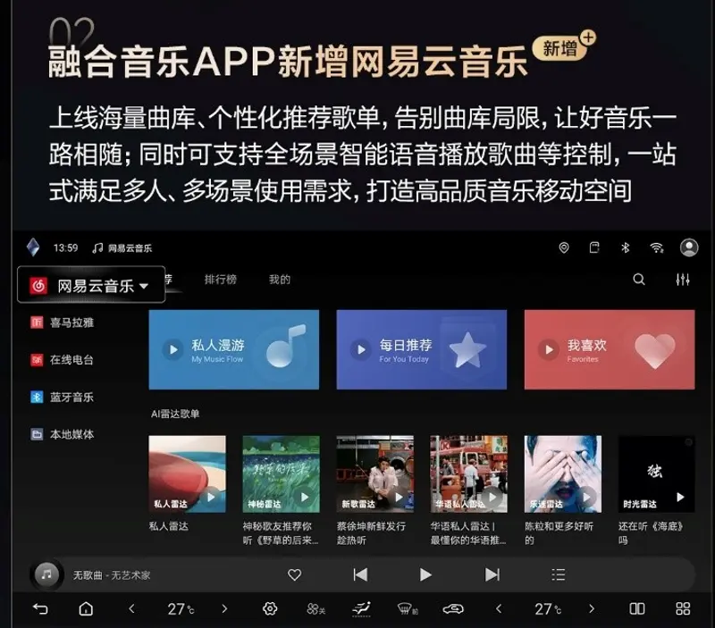 在解决日常痛点的同时,本次升级也注重旅程中的品质享受,融合音乐APP新增网易云音乐,畅享海量曲库,还支持全场景智能语音播放控制,全面升级听觉体验。手车互联新增荣耀车联与三星手机镜像模式,支持导航、应用无缝流转,打造多设备协同的智能生态,打破设备边界,畅享互联体验。