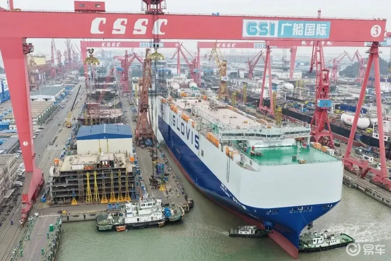 易车讯 近日,广船国际官方发布,为韩国公司建造的10800车LNG双燃料汽车运输船(PCTC)1号船已出坞,这是目前国内建造的最大汽车运输船。
