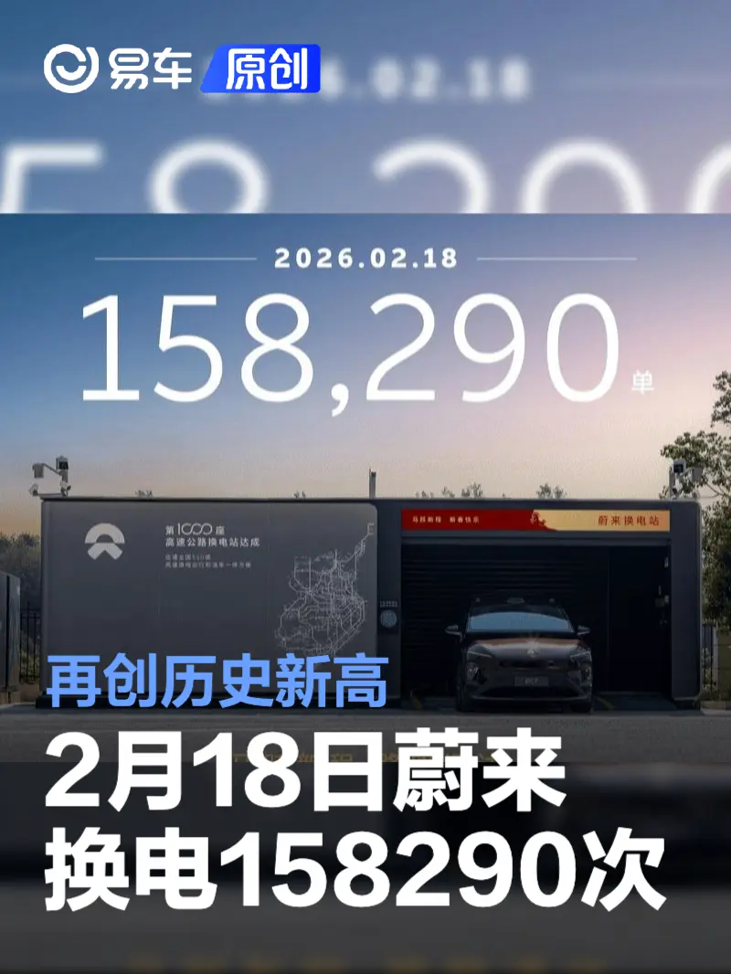 易车讯 2月19日,蔚来官方宣布2026年2月18日大年初二,蔚来换电单日总量达158,290次,再创历史新高。