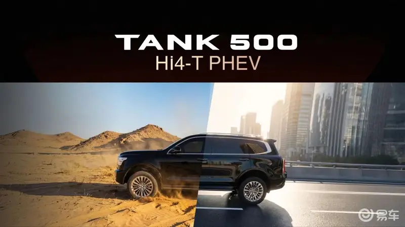 坦克500搭载专为越野场景打造的Hi4-T系统,PHEV版纯电续航120公里,综合续航可达950公里,支持24分钟快充与6kW对外放电。