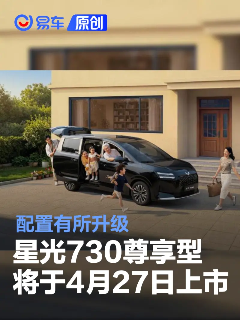 易车讯 我们从官方获悉,五菱星光730尊享型将于4月27日上市,新车标配右侧电动滑移门与智能电动尾门,搭载灵语AI中枢智能体与灵眸智能辅助驾驶系统。