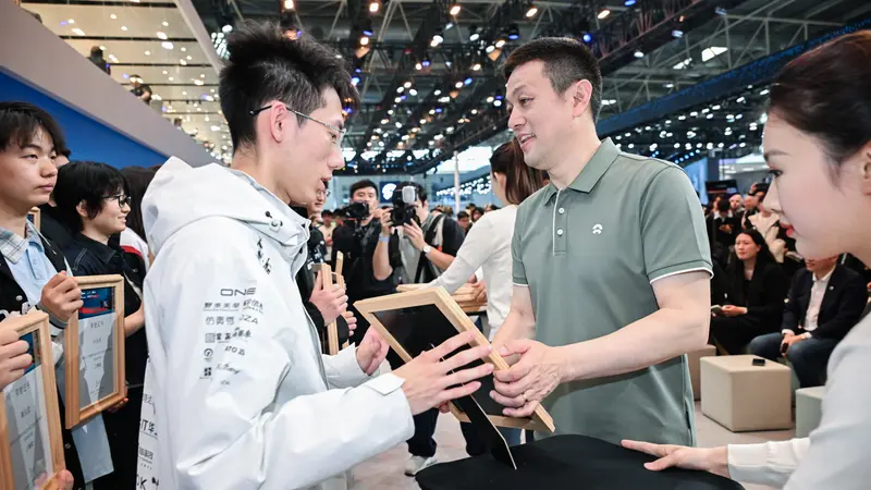 活动现场还举行了第二届“蔚来奖学金”颁奖仪式。李斌与张进华共同为2025赛季获奖学生代表授予荣誉证书,勉励青年学子潜心钻研、勇于突破。值得一提的是,现场也有从2025赛季获得面试直通卡并刚刚加入蔚来的毕业生。李斌在致辞中表示:“创新团队需要年轻血液与青春力量,年轻人就是汽车产业的未来。”