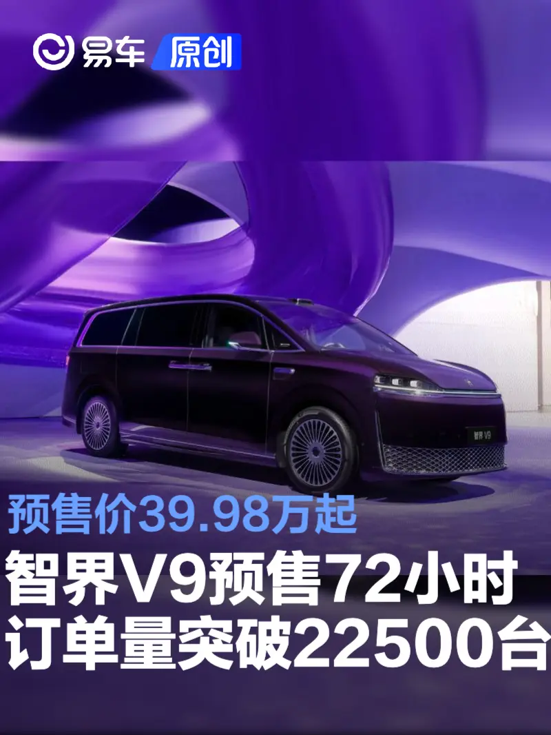 易车讯 近日,智界汽车发布最新数据:智界V9预售72小时订单量突破22500台。新车预售价39.98万-52.98万元,目前的订单中超50%用户选择智界V9 Ultra版。