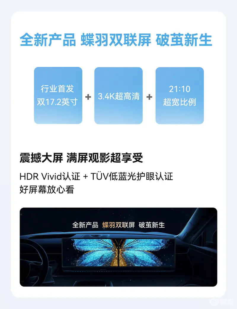 行业唯一21:10超宽屏比例,产品系列覆盖单屏、双联屏、三联屏。其中,双17.2英寸+3.4K分辨率的“蝶羽双联屏”具有:
