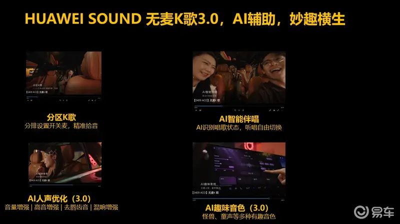 无麦K歌3.0再度进化,支持AI实时人声美化,轻松修正跑调,瞬间打造音综级演唱效果;更搭载AI趣味音效,支持卡通声、童声、电音、明星模仿等多种模式,互动更有趣,驾乘更欢乐。