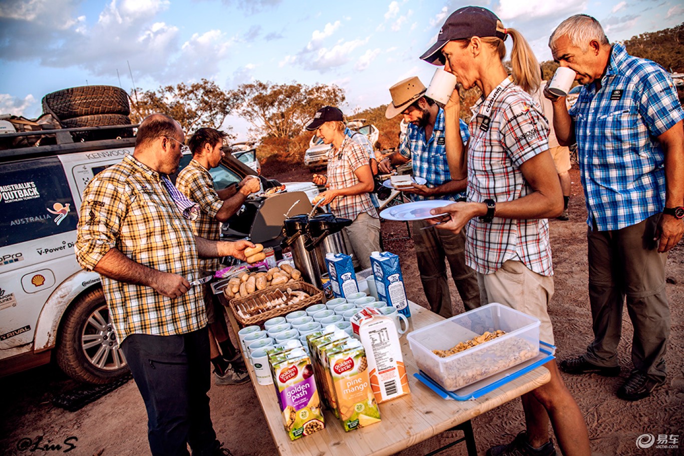 Day4,一大早便收了帐篷,直接编队来寻找昨天掉队的卡车,一顿丰盛的早餐在干燥炎热的空气中飘散着香气。