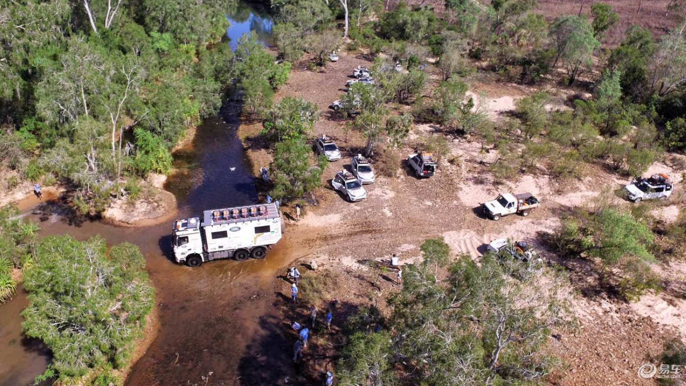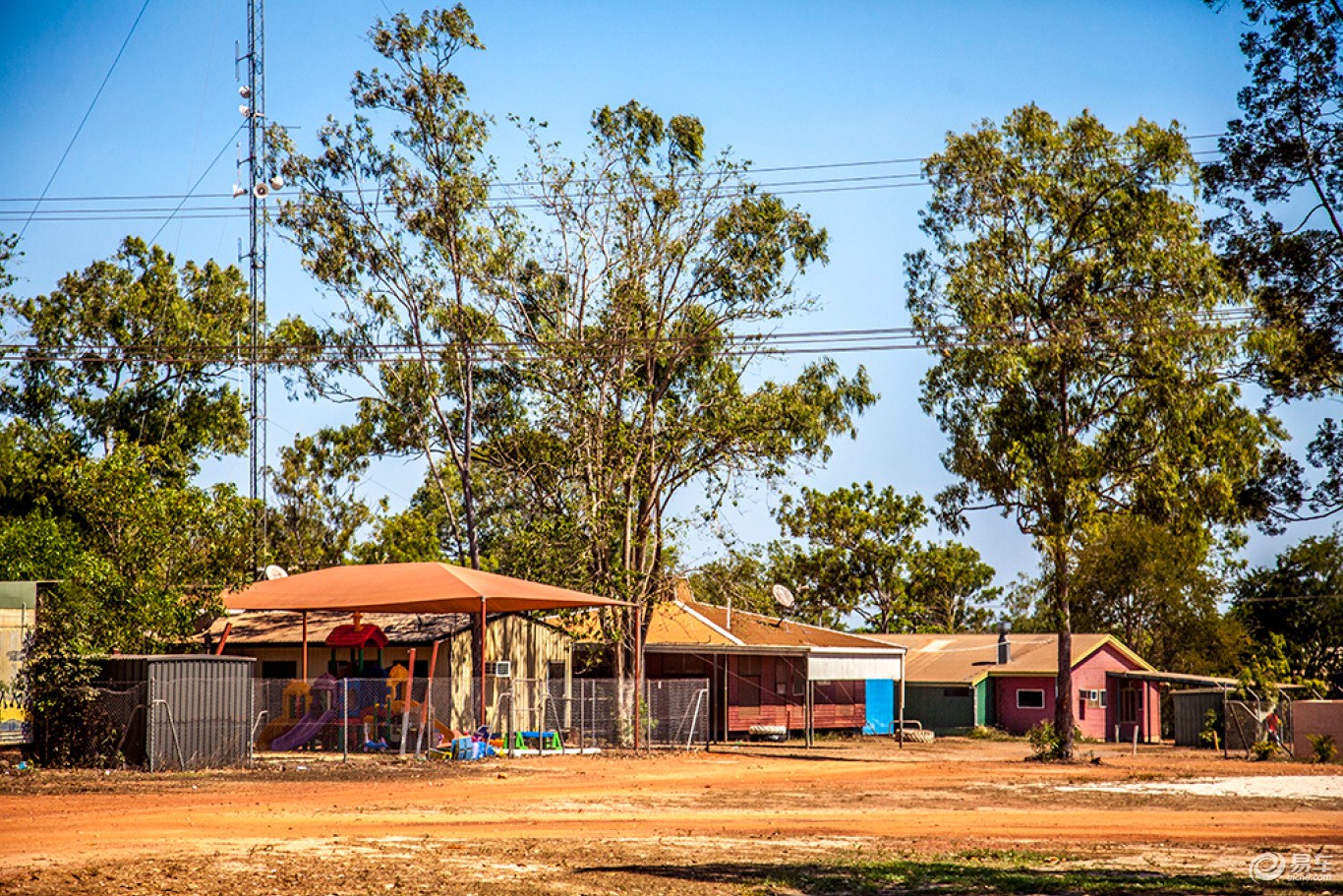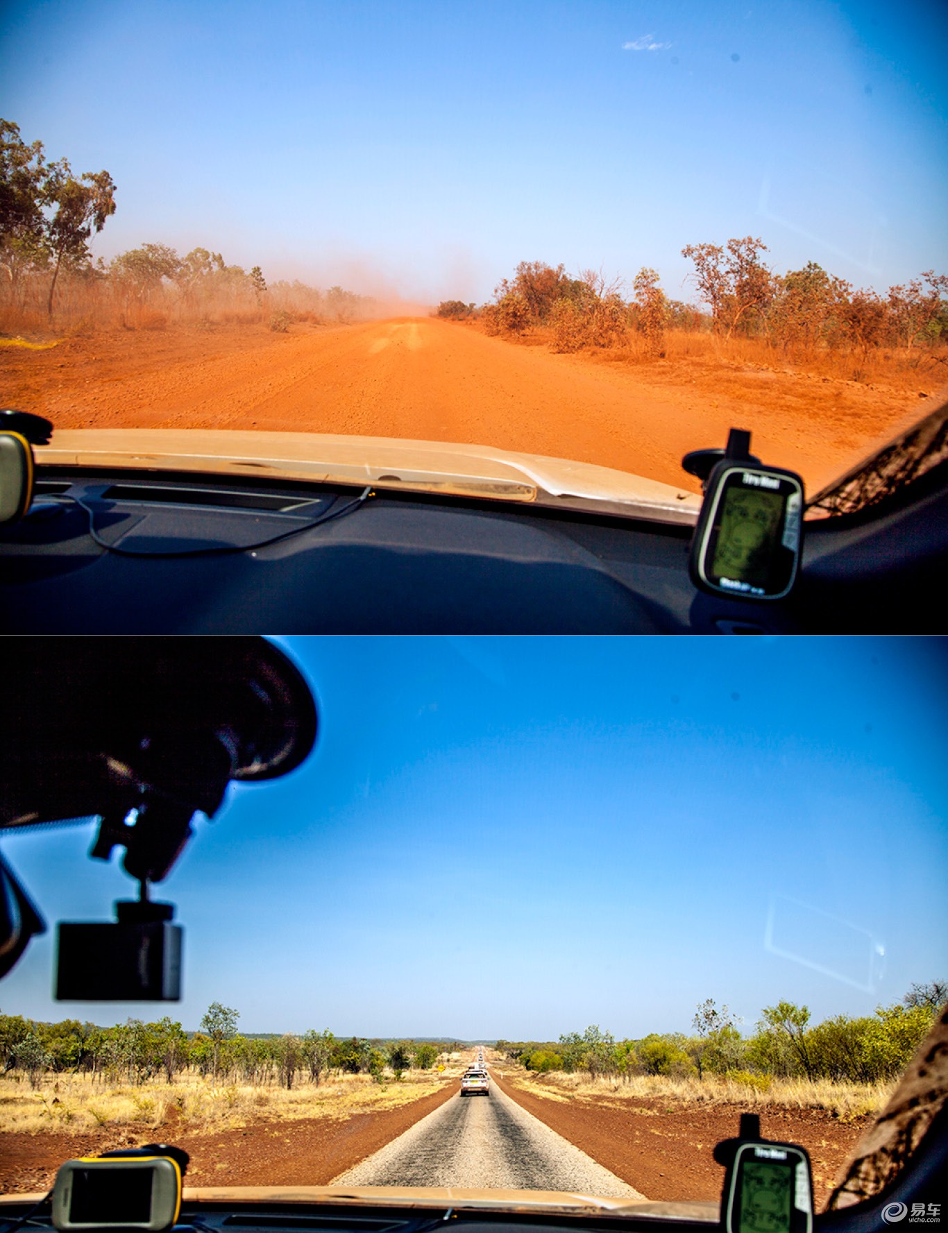 出了镇子就不再有铺装路面,车队在红土地上飞奔。北领地也被成为“红土领地”。我们身处的北领地东北是标准的热带气候,半年不下雨,下雨下半年——正赶上半年不下雨,空气里炎热干燥,随便走路都能带起尘土,更别说滚滚向前的车轮。
