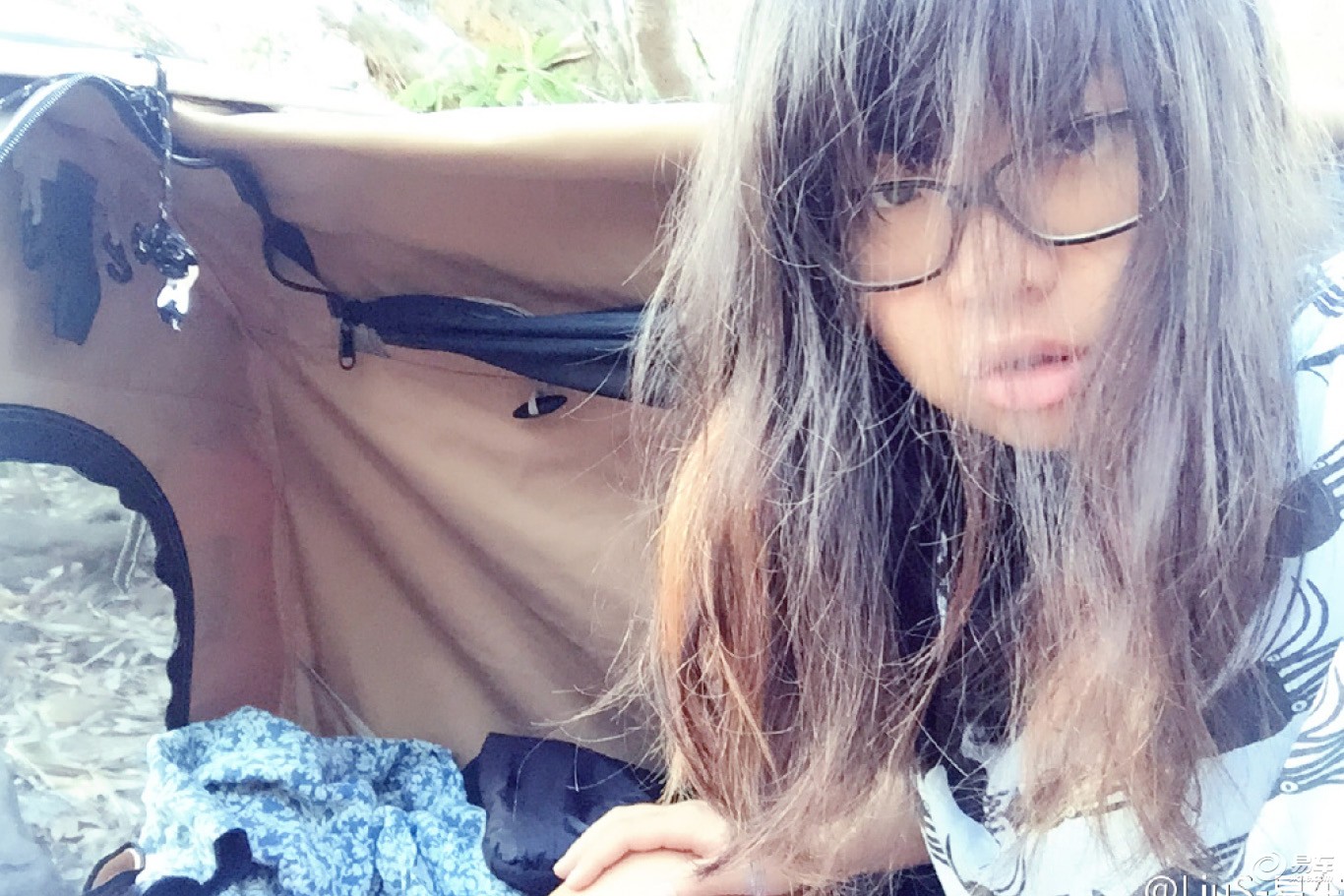 第三天,我就这样披头散发的醒来,后面是我的帐篷,我觉得我有必要自拍一张来记录一下我的狼狈。一大早就已经很热了,昨晚又被不知名的小虫咬到,露营的第二天清晨我又冲到溪水里,再洗个澡再说!