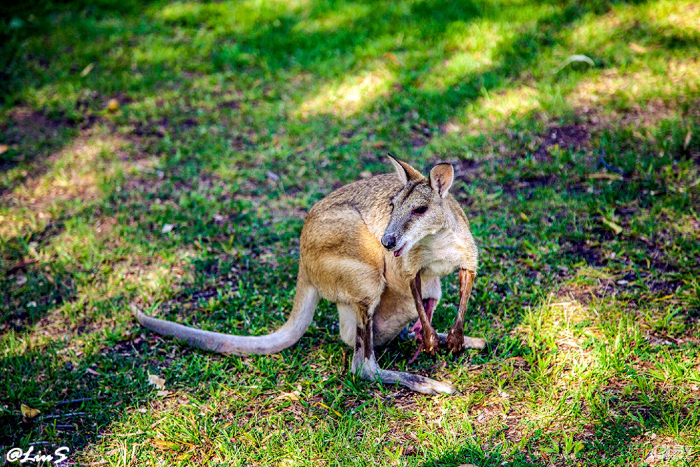 我和导游GG说一路都没见过活的袋鼠(被撞死的袋鼠倒是沿着高速随处可见),导游GG说他帮我组个局。在宾馆房间外面就看到一只澳洲短尾袋鼠在离我超级近的地方和我对视,我冲进房间拿了相机和长焦,拍下了这个美丽的生灵。