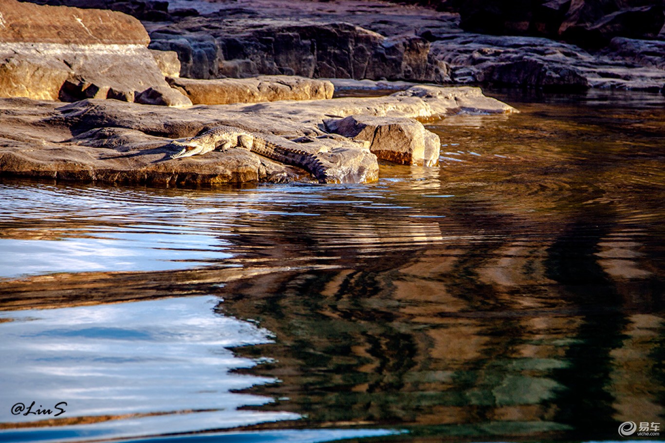但是你每天说的鳄鱼我也没见过啊,话音未落就在峡谷里看到了淡水鳄鱼。这种晒太阳的冷血动物并不凶猛,也不伤人。