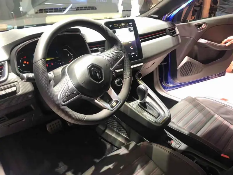 内饰方面,新车较现款相比发生了较大的变化,可以看出整体采用黑色和银色的设计,更加年轻,三辐式多功能方向盘给予更多的运动感。此外Clio采用了9.3英寸的大尺寸中控屏,并略微向驾驶者倾斜。下方的物理按键排列的较为整齐,而空调采用旋钮式设计,但可以注意到在旋钮中央融入了显示屏用来读取温度风量大小等数据。