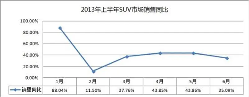 从销售同比数据上看,今年上半年市场销售同比全部保持正向的、超速的增长态势,并且正向增长的速度逐月加快。SUV的超速成长是两股新兴的汽车消费浪潮相互激荡的产物。一股新兴浪潮发轫于人们在汽车用途方向上对于多功能用途车辆的需求。另一股新兴浪潮是人们对于汽车的心灵娱乐利益的大觉醒。这种超音速式的发展形势将在今年持续下去,并会对其它类别市场造成竞争性挤压,使得SUV在国产乘用车市场的份额进一步扩张。