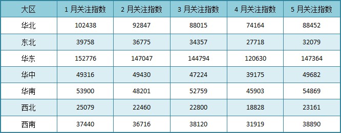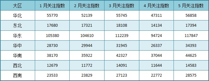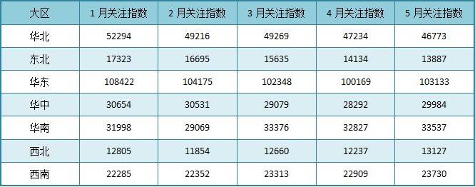 图表:2013年上半年宝马5系长轴距版大区关注指数统计