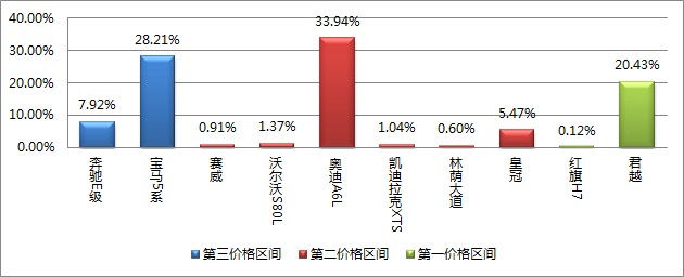 从销量上看,新君越、新奥迪A6L和宝马5系长轴距版分别称为三个价格区间的领先车型。