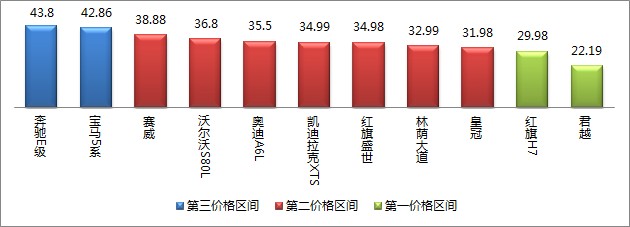 迄今为止,中大型车市场共有11款在销车型。作为国产轿车最高级别的类别车型,它的利益导向始终以商务行政座驾和顶级私人座驾为导向。按照车型起步价的差异,区分为三个价格区间。每一个价格区间的潜客人群及其价值乐透特征存在着明显差异。
