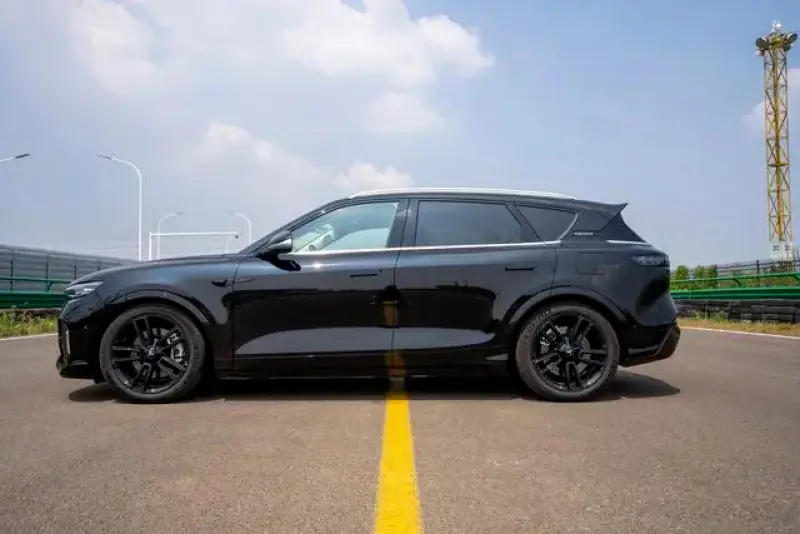 新岚图FREE的车身尺寸为4905 x 1950 x 1645mm,轴距达到了2960 mm,属于中大型SUV的范畴。我们拍摄的这台黑色的车型全部采用黑化处理,连轮圈也采用了亮黑的配色。整个侧面只有窗沿和行李架采用了镀铬的装饰,画龙点睛。