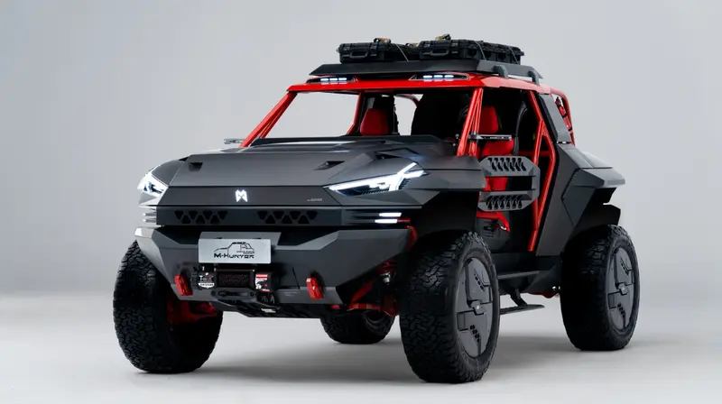 北京车展期间,东风旗下猛士品牌将推出一款超豪华的极限越野性能战车M-HUNTER。该车是面向全球顶级越野玩家打造的“极限性能私人藏品”,拥有超大极限越野轮胎,中国最大轮边扭矩,国内最高垂直跃障高度。整车还配置了高能的军工级黑科技,并采用昂贵的航空级碳纤维材料,为头号玩家和社会名流带来私人定制的稀有藏品,中国首个,国内唯一。该车外观延续猛士“雄魂”设计理念,标志性的“止戈为武”前大灯造型,配备加宽前后轮眉、车顶LED探照灯等,彰显其越野属性。