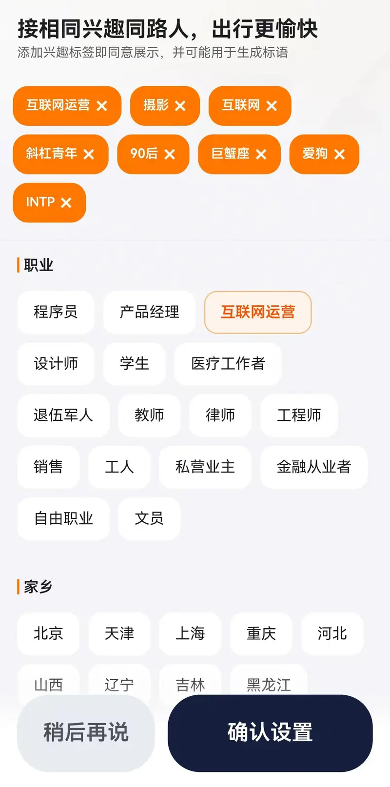 此外,如用户主动添加个性化头像并佩戴头像挂件,或主动添加兴趣标签,填写个人介绍,也将有效提升辨识度和独特性,提升访问热度,并有更大几率遇到同频的同路人,让合乘更加愉悦有趣。