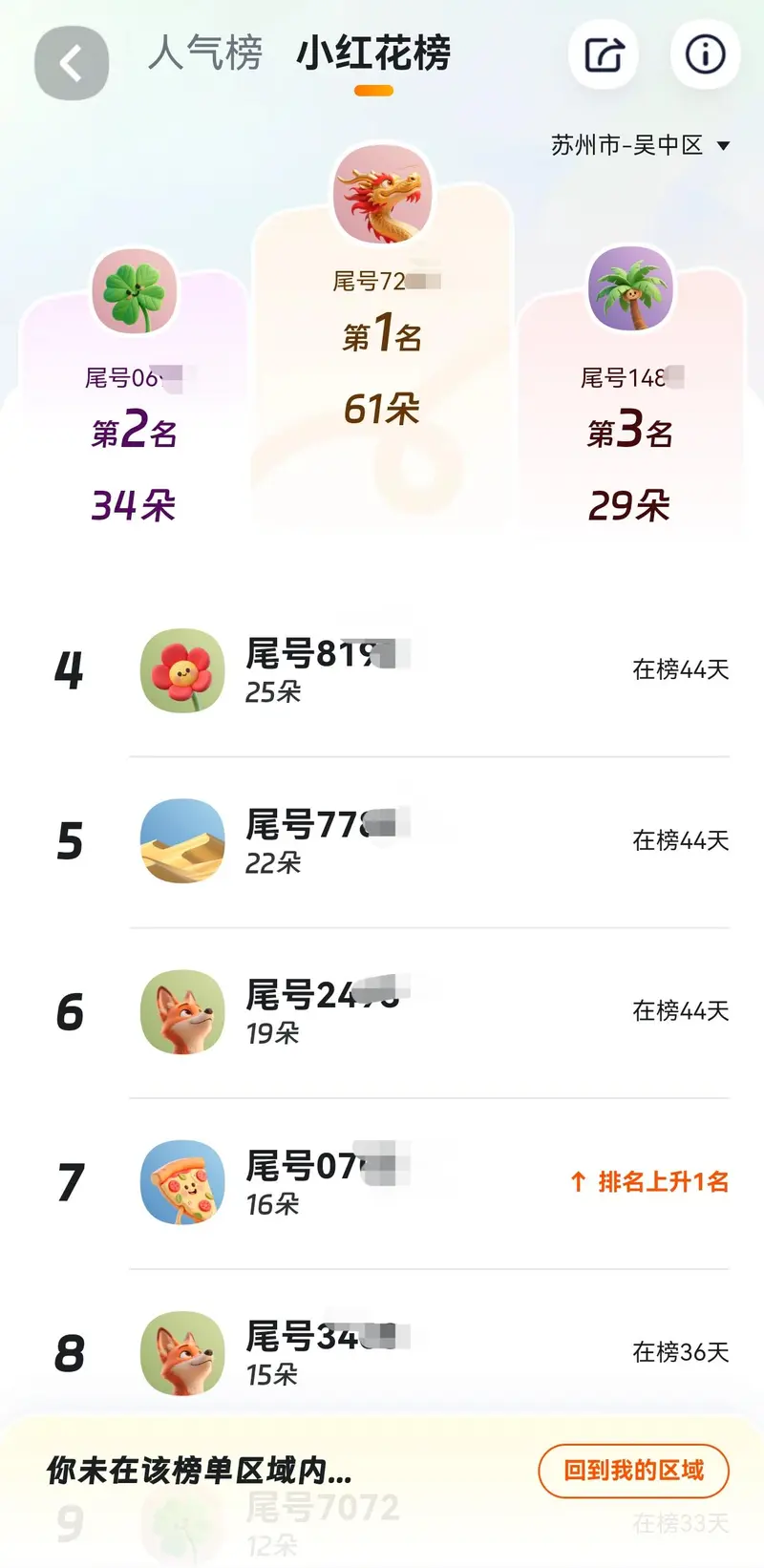 目前,顺风榜单功能已全面上线,用户打开App点击“我的”,即可在页面中选择进入顺风榜单板块。除了查看自己在所在区域是否上榜,还可查看本城市其他区域,以及全国其他城市的顺风人气榜和小红花榜单。