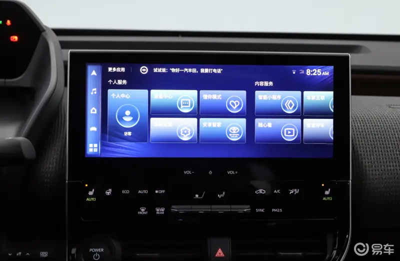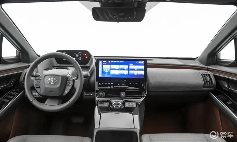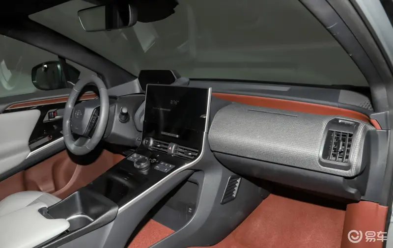 之前概念车上配备的异形方向盘到了量产车上可在顶配车型上看到,低配车型依旧采用传统的方向盘造型。中控台大量的使用织物材质更是凸显了 bZ4X 的环保理念。副驾驶的手套箱被取消,为副驾驶营造出更舒适的乘坐空间。