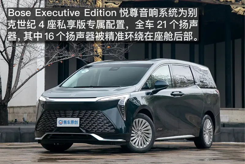 别克世纪4座私享版上使用的BOSE音响系统是全球首款以后排为优先聆听位置而开发的,它被称为Bose Executive Edition悦尊音响系统,配备包括后排UltraNearfield超近场头枕扬声器在内的共21个扬声器,其中16个扬声器被精准环绕在座舱后部,包括后排座椅的头枕位置。同时,别克与BOSE通过深度定制,采用先进算法及专业声学调校。