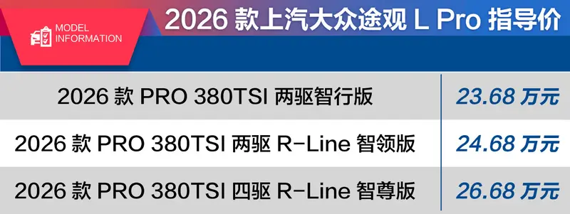 途观L Pro 2026款的定位非常清晰——“超聪明的油车”。它旨在打破“燃油车等于智能化落后”的刻板印象,以23.68-26.68万元的价格,推出了三款车型。这个价格区间,使其在与传统燃油SUV竞争的同时,也具备了与同价位新能源车型在智能化层面一较高下的底气。上汽大众敏锐地捕捉到了用户对“大厂品质、机械素质、智能表现”这一“黄金价值三角”的需求,而途观L Pro正是这一理念的集大成者。