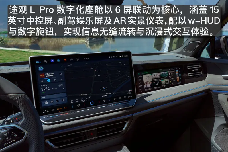 进入车内,途观L Pro的座舱彻底告别了大众以往的风格,以6屏交互为核心,营造出强烈的科技氛围。15英寸2K悬浮大屏搭载高通8155芯片,是交互中枢;11.6英寸副驾娱乐屏支持独立蓝牙连接,互不干扰;10.25英寸全液晶仪表则首次搭载AR实景导航,指引更直观;再加上w-HUD平视显示、多功能数字旋钮和手机互联,共同构成了信息无缝流转的数字化体验。车载全知大语言模型是另一大亮点。上汽大众与百度合作,融合了百度文心与DeepSeek双AI大模型,并深度集成于语音助手。无论是百科闲聊、AI生成内容,还是规划行程、创建情景模式,它都能成为一个聪明的车载助手,实现“越用越懂你”。