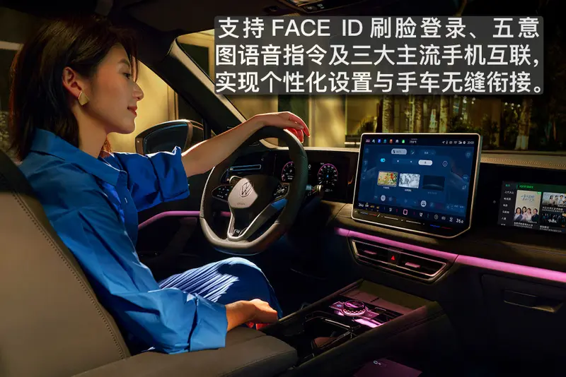 FACE ID智慧识别让“刷脸即登”成为日常,上车瞬间自动同步座椅、后视镜、音乐等个性化设置。同时,系统支持单句话最多五个意图的语音识别,以及Apple CarPlay、华为HiCar、百度CarLife三大主流手机互联的全覆盖,真正实现了手车无缝衔接。