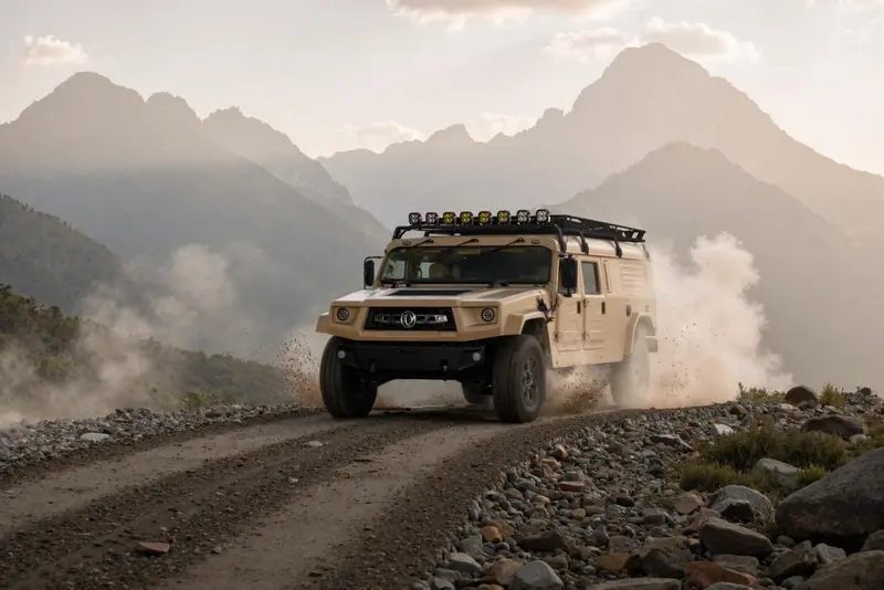 辅恒汽车景飞牌M50强汉搭载的4.0T柴油发动机,最大功率为200马力,强悍的牵引能力使其可以轻松地在越野中克服万难,其继承了东风猛士军车无思艰难、全域到达的军车基因。适用应处突野外作业等领域,具有高机动性、高通过性、高可靠性,以及全天候、全天时、全地形越野能力。