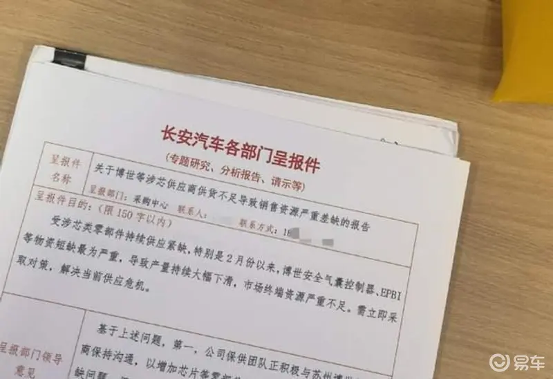 一份疑似“长安汽车各部门呈报件” 反映物资短缺