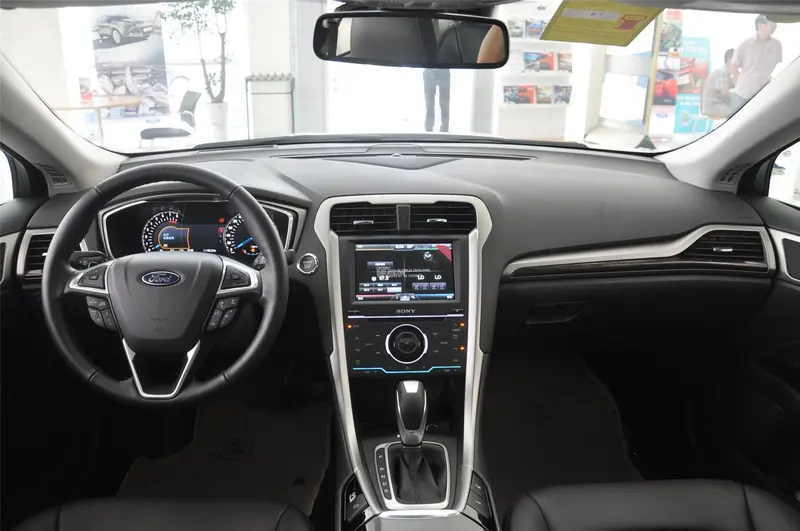 相比外观的惊艳,内饰方面也保持了蒙迪欧车系的水准,相比致胜更加的年轻化,各部位手感也非常良好。液晶仪表盘和中控区还是值得一提的。仪表盘信息丰富,显示清晰。而中控台上最明显的就是触控按键区和大屏幕,比较具有科技感。SONY的Logo位于正中,十分抢眼,个人对这样的设计比较受用,毕竟SONY这个牌子还是非常响当当的。