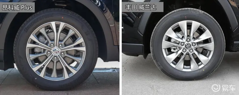 别克昂科威Plus以及丰田威兰达均采用18英寸轮圈,轮胎尺寸分别为235/55 R18以及225/60 R18,前者轮胎品牌为普利司通,后者为优科豪马,成本上前者更高。