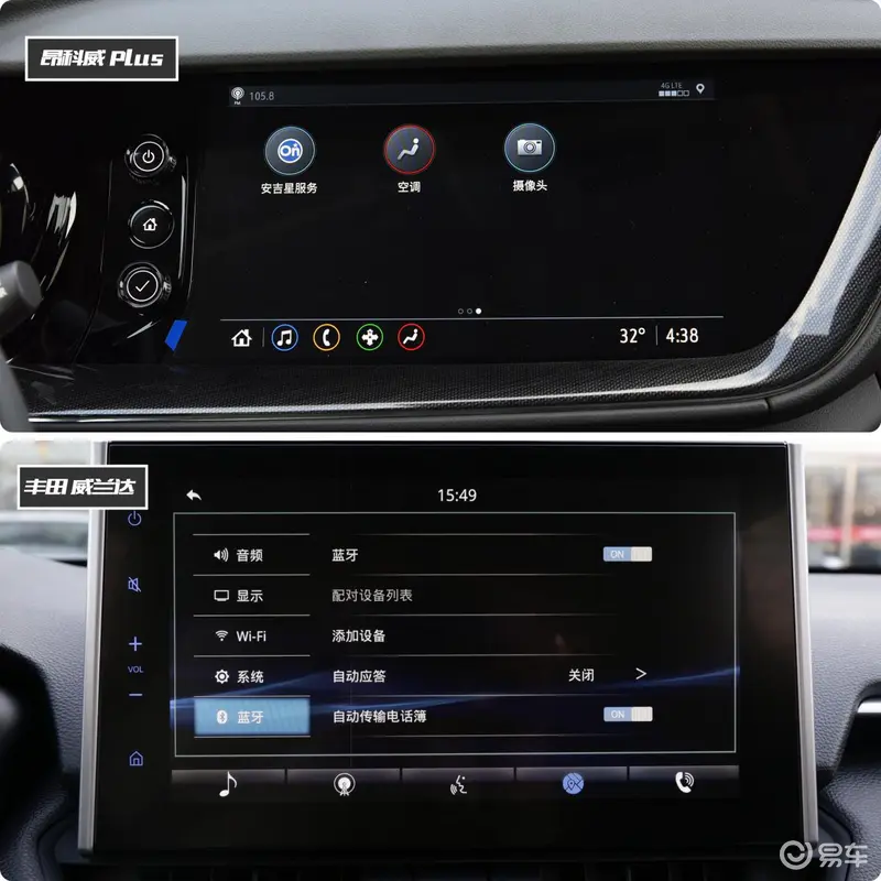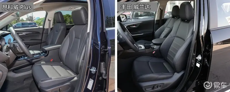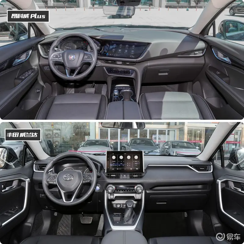 内饰部分,两台车在风格上的差异和外观类似,别克昂科威Plus主打的精致豪华,丰田威兰达主打实用主义,后者有着更多的机械按键方便盲操作,但从观感上和豪华感上来说,别克昂科威Plus更胜一筹。