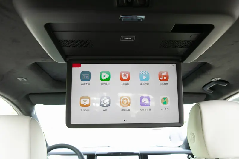 传祺E9在第二排也搭载了15.6英寸的吸顶屏,第二排座椅的扶手屏、小桌板以及支持单独播放的雅马哈头枕音响,让后排乘客都有着较高的娱乐以及影音视听享受。