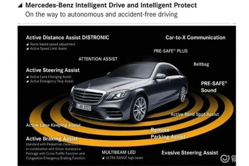 2016年,奔驰发布了自动驾驶技术——DrivePilot。该技术目前包含主动变道辅助、Car-to-X通信系统、Distance Pilot DISTRONIC系统等,能够保证车辆在交通拥堵的复杂路况下实现大部分自动驾驶功能。