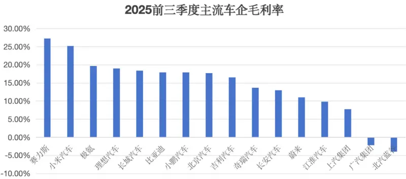 比亚迪与吉利也都早已布局垂直供应链体系,比亚迪2025年前三季度汽车业务毛利率为17.87%,吉利是16.5%。