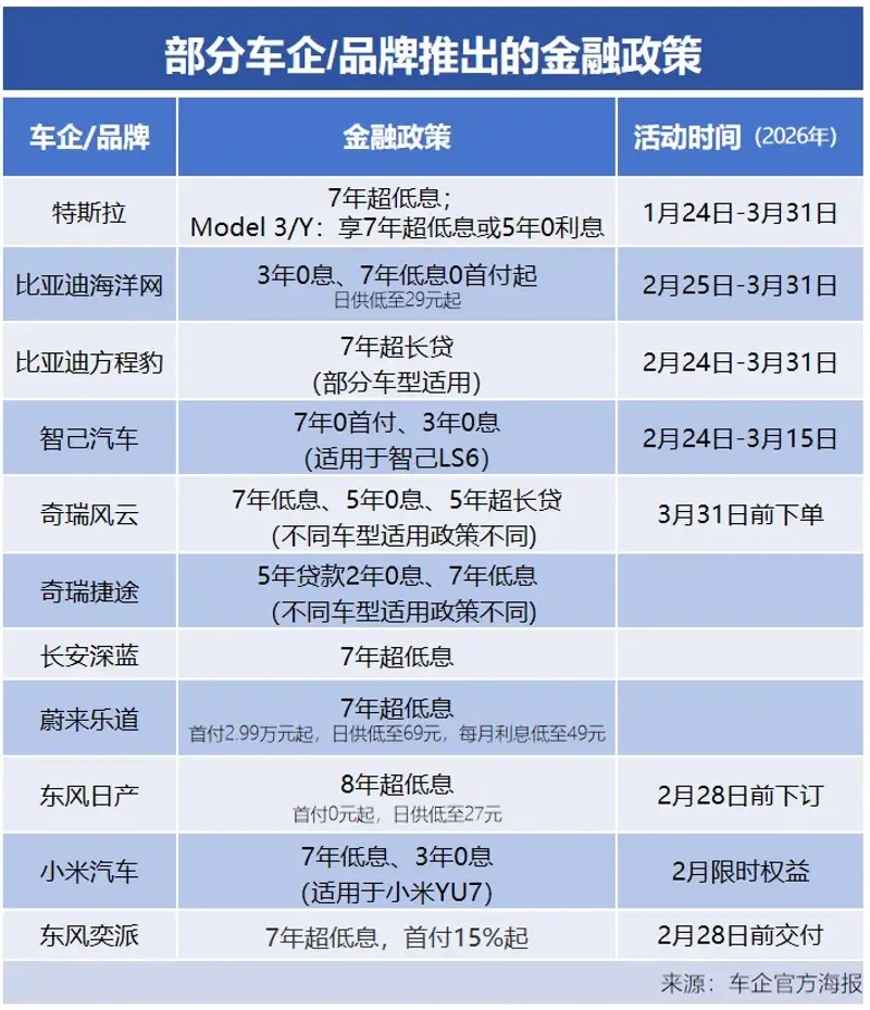 2月26日,特斯拉发布新一轮购车金融优惠政策,全系车型可享“7年超低息”贷款,其中Model 3/Y/Y L三款主力车型还可选“5年0息”方案。