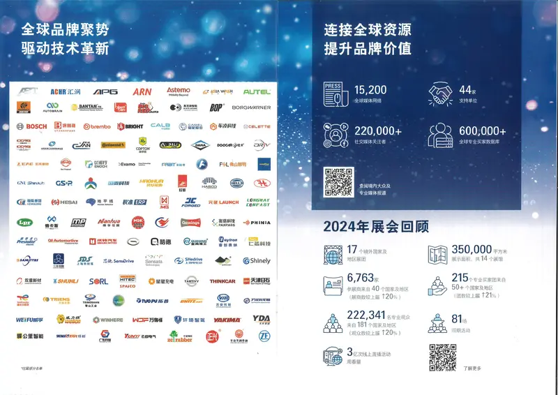 部件及组件板块汇聚全球零部件新锐与龙头企业,包含再制造专区在内的3,200余家参展企业将汇聚众多前沿产品技术,例如首次参加的知名品牌德国科德宝的高性能滤清器、瑞士盖瑞特的高效涡轮增压系统以及奥地利米巴集团的先进摩擦材料技术等。此外,爱信、安斯泰莫、倍适登、博世、采埃孚、大陆、富奥、恒隆集团、马勒、纳铁福、尼得科、青山工业、天润工业以及中鼎集团等领军企业也将再度亮相。电气及电子系统板块将迎来约660家参展企业。得益于辅助驾驶领域快速增长的市场需求,L2+级智能驾驶的普及,传感器等电子产品企业显著提升,首次参展的炜盛科技将带来R290 冷媒泄漏传感器,能够极大提升电动汽车的安全性与环保性。其他代表品牌包括万安、云意电气、南孚新能源、天博、日用友捷、森森、森萨塔、汇众、汇润机电、环方、贵阳万江、超力以及雅光等。
