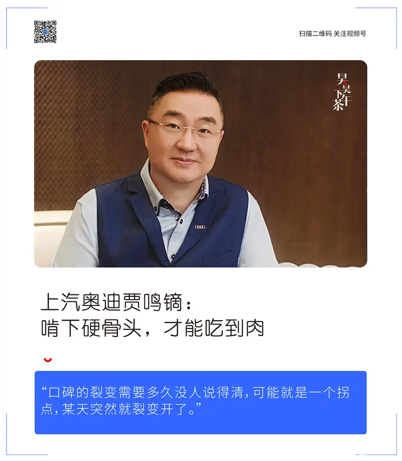 站在时代变革的洪流里,看着BBA们的护城河遭遇着猛烈拍击,贾鸣镝,却要扛起上汽奥迪的新使命。