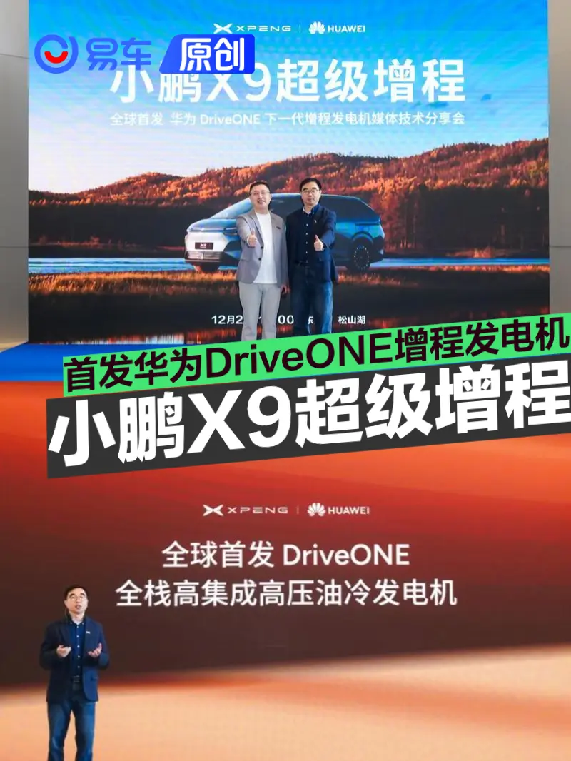 12月2日,小鹏汽车与华为在华为松山湖园区联合举办下一代增程发电机媒体技术分享会。双方共同宣布,小鹏X9超级增程全球首发华为DriveONE全栈高集成高压油冷发电机。该发电机作为小鹏鲲鹏超级增程技术的核心部件,以行业最高的1.88kW/kg持续功率密度、≥92%的行业领先工况发电效率及无感增程体验,为“下一代增程”树立了全新的技术标杆。