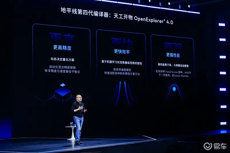 编译器持续进化,全面进入“AI驱动编译”时代。作为交响乐的指挥,地平线的编译器技术同样经历了三代迭代。本次发布的第四代编译器天工开物OpenExplorer®4.0,实现了更高精度、更快效率和更强性能的突破,编译速度从小时级提升至分钟级,模型性能提升20%。其革命性在于引入了AI驱动的优化策略,标志着编译器技术从工具自动化,迈向了基于机器学习的自我进化新时代。