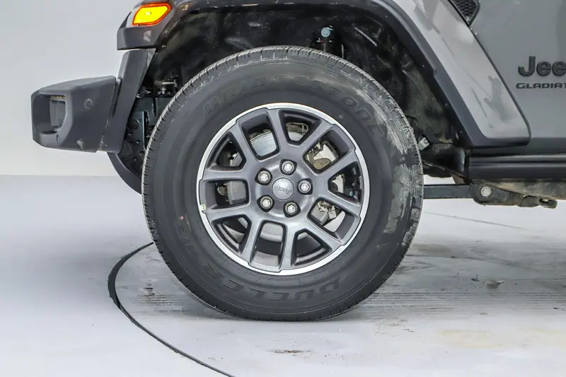 轮圈方面,角斗士采用了18英寸的云石灰五辐轮圈,轮胎为普利司通DUELER H/T系列轮胎规格前后均为255/70 R18。这款HT轮胎的特点是胎壁柔软,胎面花纹细密,讲究公路行驶的舒适与安静,并具有一定的越能能力。不过个人认为后期更换AT胎或MT胎才能更好地展现出角斗士的越野能力。