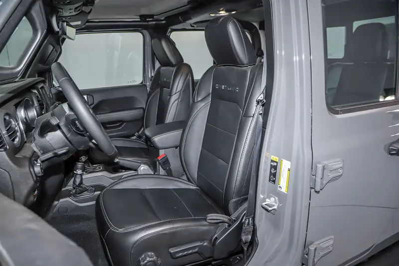 角斗士的座椅采用了真皮包裹,座椅调节为手动形式,这点也牧马人也是无异。不同之处在于,后排座椅不仅可以椅背放倒,而且可以像很多美式皮卡一样将坐垫收折,从而增加车内装载空间。
