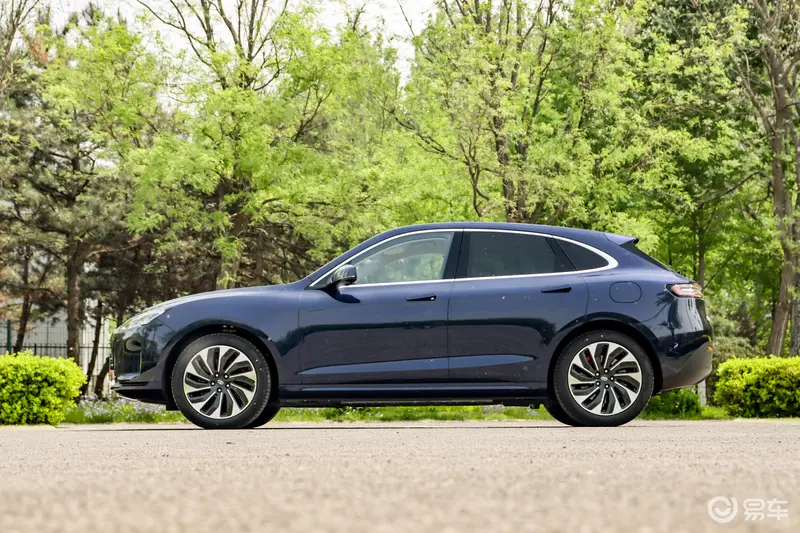 车身侧面,问界M5线条十分简洁,流线型的车身设计,隐藏式门把手、20英寸的双色多辐条轮圈,营造运动感上还是下了一番功夫的。