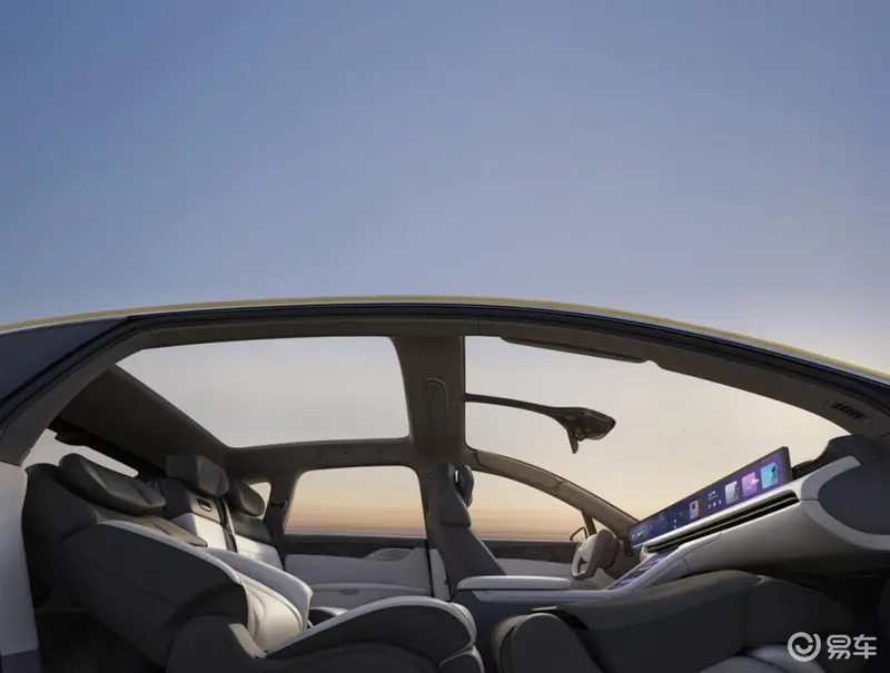车头是一块视野角度达到106°的前挡玻璃,面积达两平米,具体是什么概念?它的高度差不多是普通前挡玻璃面积的2倍,坐在车内,你好似坐在第一排看iMax电影,举头之上全是玻璃。这个设计以前欧宝用过,但特斯拉把它发扬光大,现在很多高端新能源车都在用,显档次。但是特斯拉据说车内被晒成狗,智己LS7能否避坑?