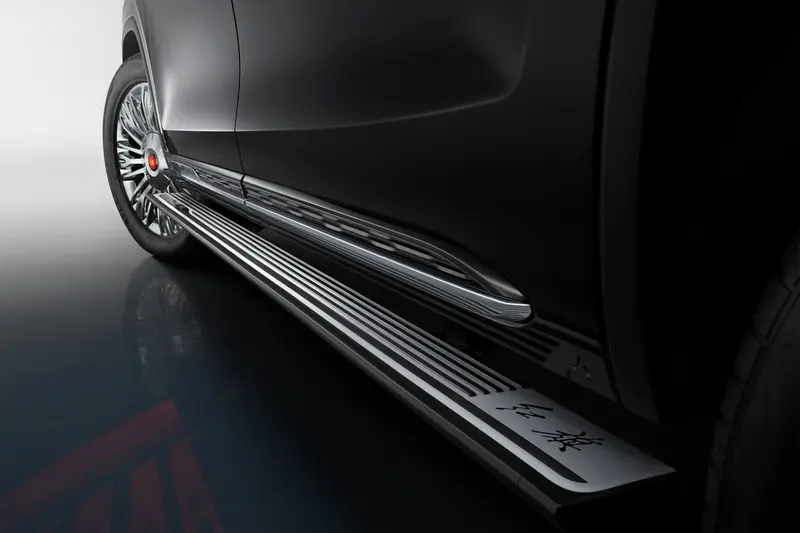 如此高大的车身必然会带来一些影响,例如上下车时候乘客的姿态,红旗不允许这样不优雅的时刻出现,一套定制化电动脚踏板出现在LS7上,实用性和美感兼具。