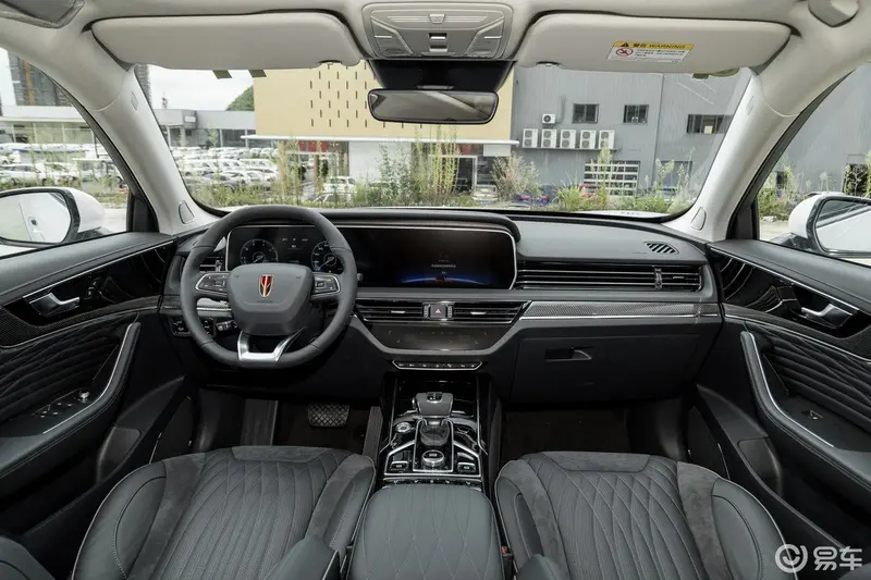 车辆内饰设计十分方正,大量木纹、皮革和镀铬材质的加入,更显整车的豪华感。另外,大尺寸全液晶仪表盘、中控显示屏以及12英寸宽幅HUD抬头显示、流媒体后视镜,还有红旗Smile 1.0智能车载系统,看起来科技感十足。
